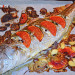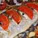 Salpimenta al gusto la corvina, colócala en la bandeja del horno y practica unas incisiones (cincelar) en su piel, introduce en ellas unas bayas de enebro y romero, coloca también las rodajas de pomelo.