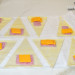 Extiende la masa de hojaldre de mantequilla sobre el papel vegetal, tiene que estar bien fría de la nevera. Con ayuda de un cuchillo bien afilado o un corta pizzas, corta el hojaldre en triángulos, según el ancho que le des a los triángulos te saldrán más o menos unidades, hazlos a tu gusto. Recuerda que el hojaldre se debe cortar sin arrastrar la hoja del cuchillo, como explicamos en este post.
