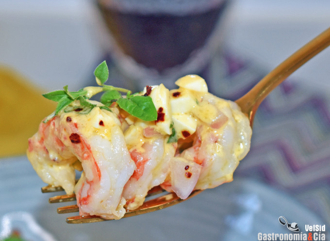La vinagreta historiada no os la podéis perder si no la conocéis, la receta la compartimos con vosotros hace bastante tiempo, y qué mejor forma de recuperarla que con esta propuesta culinaria tan sabrosa. Comentaros también que podéis hacer algunas variantes de esta ensalada, pues queda igual de bien si en lugar de gambas se sirve pollo confitado, pulpo, bonito en aceite de oliva virgen extra (o alguna alternativa vegetal para quien lleve una dieta vegetariana, que ya hay para todos los gustos). Pues vamos con la receta de esta ensalada de gambas y pepinillos que os va a conquistar.