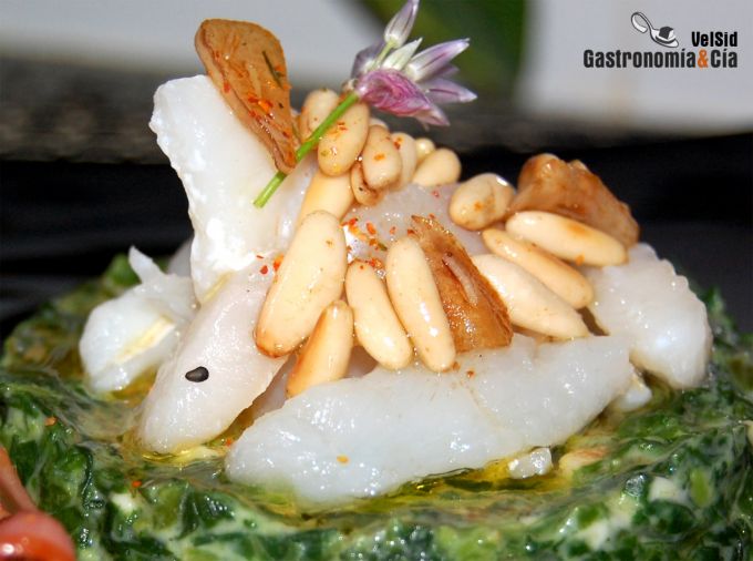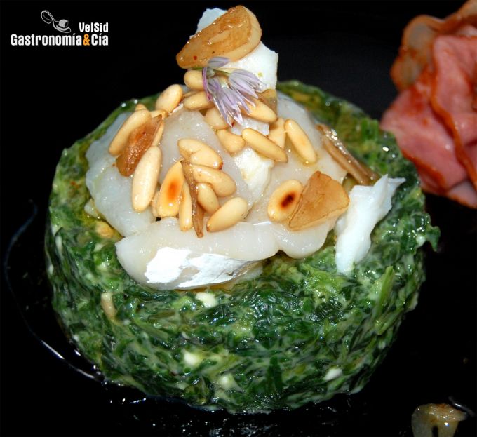 Las Espinacas con bechamel y bacalao con vinagreta de ajos confitados pueden ser un entrante o un segundo plato si se le da más protagonismo al bacalao. Sea como sea, es una receta de espinacas fácil de elaborar y que proporciona a los paladares más exigentes un ingreso en la lista de sus platos favoritos.