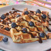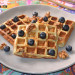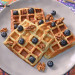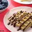 Sirve los gofres de plátano y avena en el plato y corónalos con los alimentos elegidos, en este caso ya has visto que son arándanos frescos, nueces y un poco de chocolate en forma de sirope. ¡Buen provecho!
