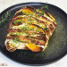 Adereza con el ajilimoji o con aceite de ajo y perejil generosamente y sujeta bien la pieza con dos palitos de brocheta para que se mantenga cerrada durante la cocción. Coloca el lomo en una bandeja apta para la freidora de aire.
