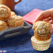 Reparte sobre cada magdalena unas almendras en granillo y un poco de azúcar, y cuando el horno esté caliente, introduce la bandeja a altura media, baja la temperatura a 190º C y programa unos 15 minutos.