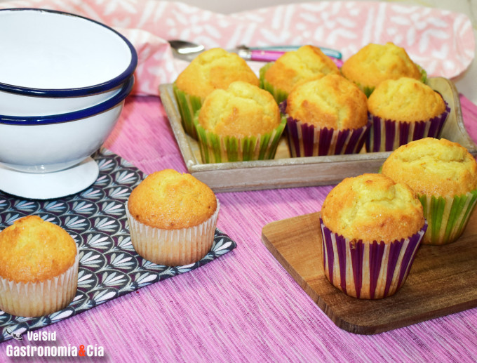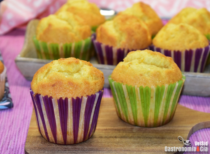 Estas magdalenas caseras de naranja normalmente las terminamos con una glasa que elaboramos con azúcar glas y zumo de naranja, igual que hacemos la glasa de limón. Pero no hemos querido añadir más azúcar y así están requetebuenas, ya verás. ¡Buena cocina y buen provecho!