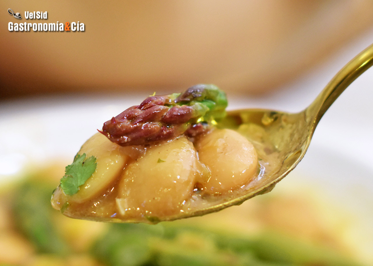 La ricota no la condimentamos antes de servirla en el plato, pues con todo lo demás ya adquiere el sabor que precisa para acompañar al boniato asado, así que simplemente hay que batirla para que esté cremosa y servir una gran lágrima extendida en el plato.