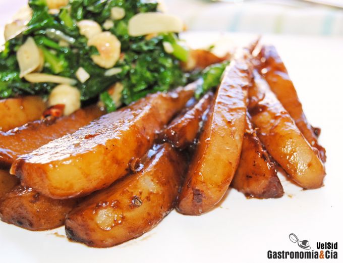 Quizá la primera vez que probéis esta receta de Nabos con miso y avellanas será ideal que se sirva como guarnición, puede acompañar muy bien carnes como el pollo, el lomo de cerdo, la butifarra fresca o también pescados, como el bacalao, la merluza e incluso el atún.
