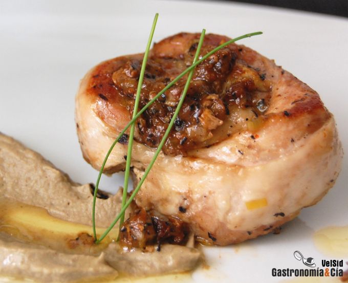 Sirve un par de cucharadas de salsa de berenjenas (después te pedirán repetir) y dale forma con una cuchara, sirve a continuación el ossobuco y riega con el jugo que ha quedado después de guisarlo junto al puerro que resultará jugoso y proporcionará un sutil dulzor. ¡Buen provecho!