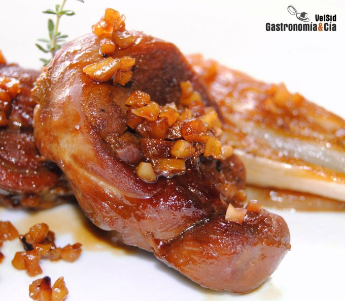 La receta de Pato con endibias también puede ser un plato ideal en un menú de celebración. Hoy hemos utilizado el muslo troceado, pero en caso de querer servirlo en una comida festiva, lucirá mucho más si se ponen los muslos enteros. La elaboración será igual, aunque variará un poco el tiempo de cocción. Si le tenéis cogido el punto al pato para que resulte jugoso, el éxito está asegurado.