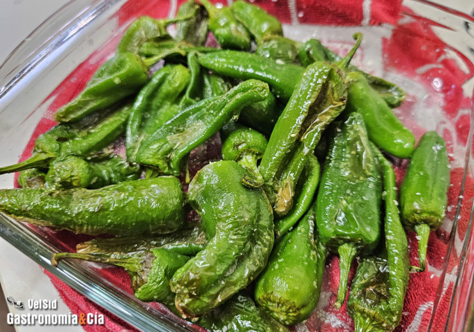 Tanto si compras los pimientos semipicantes o los pimientos de Herbón a granel o en bolsa, debes lavarlos antes de cocinarlos. Así que lávalos bien con agua del grifo y después escúrrelos y sécalos bien.