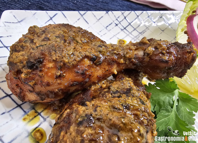 Impregna bien el pollo con la marinada, tapa la bandeja con papel de aluminio o film y deja reposar en el frigorífico, lo ideal es hacerlo de un día para otro, se puede preparar por la noche para cocinar al día siguiente.