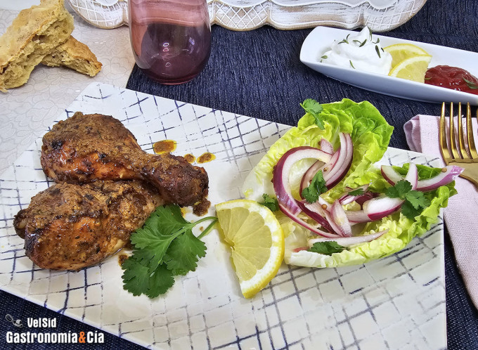 Puedes acompañar estos deliciosos muslos de pollo con yogur y las mejores especias con una ensalada fresca, bastan unas hojas de lechuga crujientes y cebolla morada encurtida. El resto es comer y disfrutar. ¡Buena cocina y buen provecho!