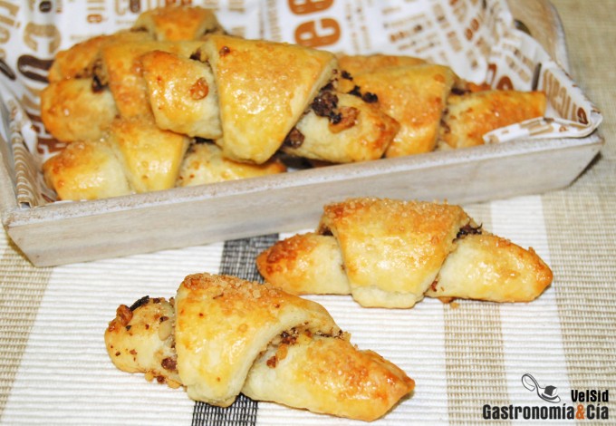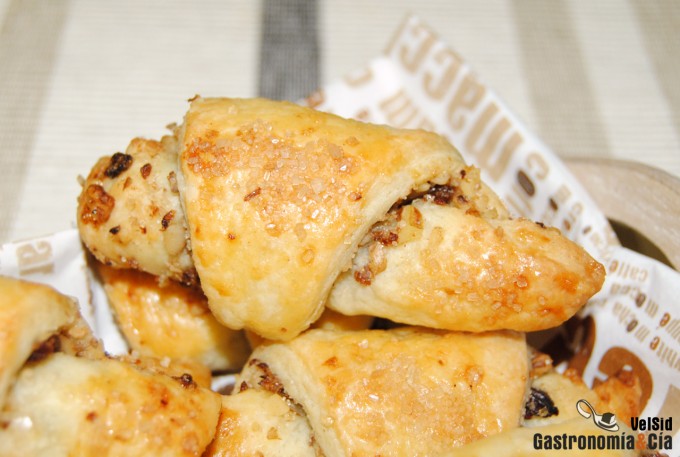 Hornea los rugelach con nueces y pasas en el horno precalentado a 200º C con calor arriba y abajo, pero cuando los introduzcas, bájala a 185º C. El tiempo de horneado rondará los 20 minutos, cuando estén dorados, los puedes retirar y colocar sobre una rejilla para que se enfríen. Después viene lo mejor, la degustación. ¡Buen provecho!
