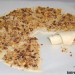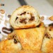 A continuación corta ocho triángulos de masa, como se puede apreciar en las fotos. Haz lo mismo con la otra porción de masa. Reparte sobre ellas el relleno de nueces, pasas y canela y procede a formar los rugelach enrollando la masa desde la parte más ancha hasta la más estrecha, presionando ligeramente para que el relleno se adhiera.