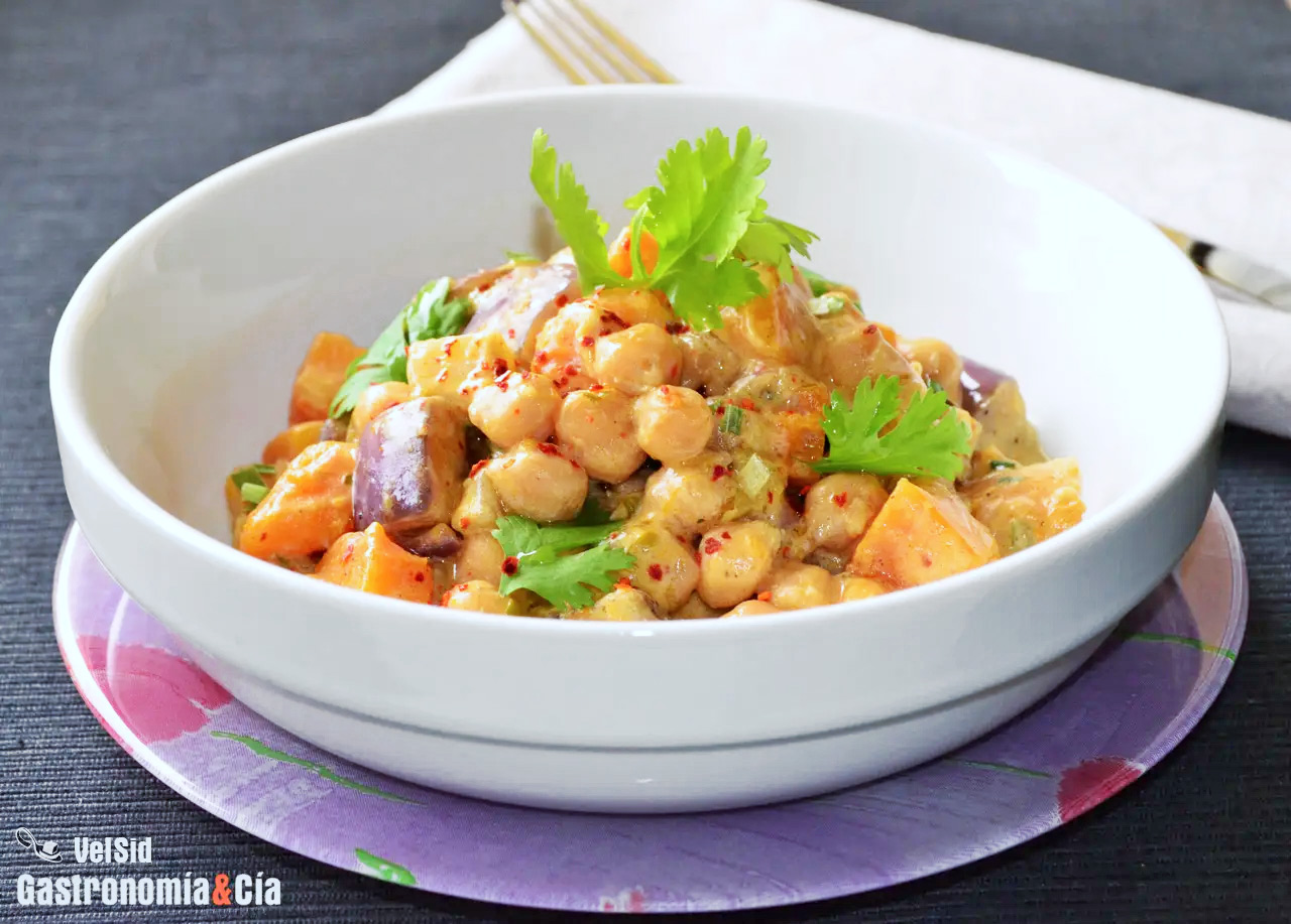Los ajos asados los teníamos preparados de una elaboración anterior, de los Patés vegetales: Berenjenas. Puedes tener asadas varias cabezas de ajo y conservarlas para ir incluyéndolas en distintos platos, los ajos asados dan un sabor muy especial. Si no tienes tiempo de hacerlos, puedes sofreírlos junto a la calabaza.