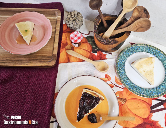 Cuando insertes un palillo y salga limpio es que la tarta está cuajada. Si te gusta más cremosa, sólo tienes que reducir el tiempo de cocción. En cuanto a la cocción de la tarta en el horno, puedes seguir las recomendaciones de esta receta.