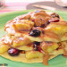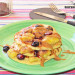 Sirve en el plato las tres tortitas intercalando la fruta al gusto, para terminar, añade la manteca de cacahuete crujiente. ¡Buen provecho!