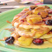 Empieza dorando los plátanos por un lado y cuando les des la vuelta para que se hagan por el otro, incorpora los arándanos, deja un minuto aproximadamente, tapa la sartén y deja reposar medio minuto retirando la sartén el fuego.