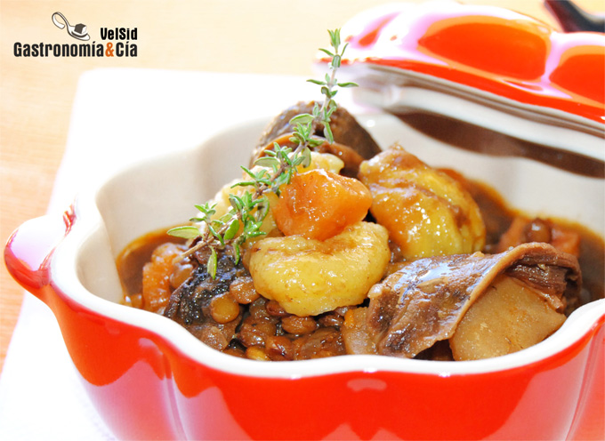 Estofado de ternera con setas y batata