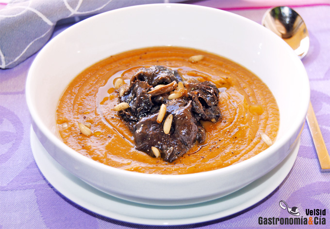 Puré de batata con rebozuelos atrompetados