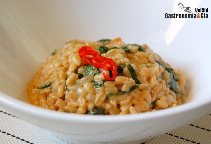 Trigo tierno con espinacas y queso tetilla