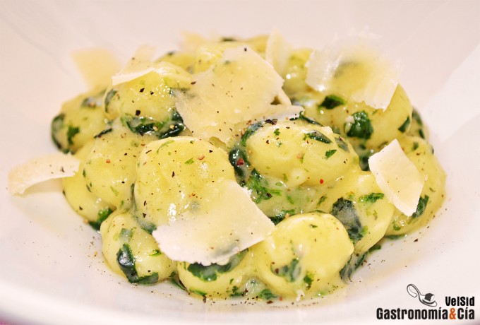 Ñoquis con salsa cremosa de espinacas