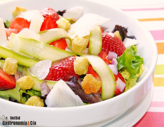 Ensalada con fresas y espárragos verdes