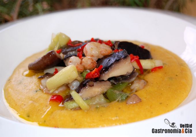 Polenta de calabaza y coco con setas