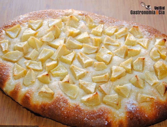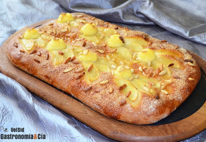Coca de San Juan con crema y manzana
