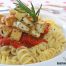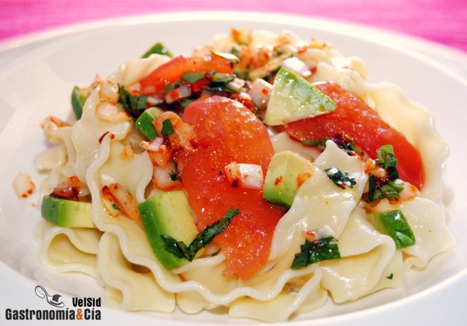 Ensalada de Mafaldine con pétalos de tomate y aguacate