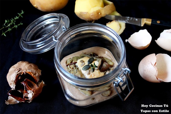 Crema de patata y ajo negro con boletus salteados y salsa de huevo frito