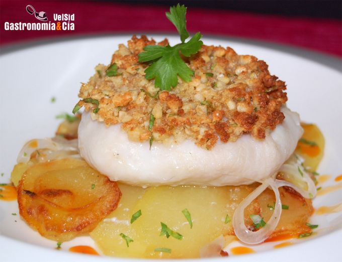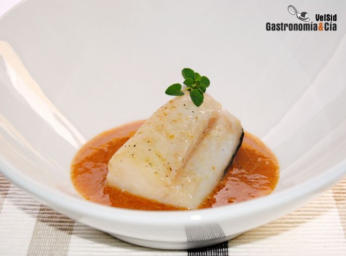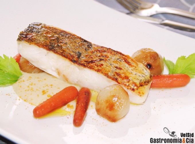 Bacalao con salsa de naranja, cebollino y hierbabuena