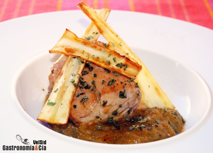 Solomillo de cerdo con compota de pera y chirivía
