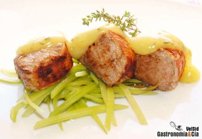 Solomillo de cerdo con velouté de cava
