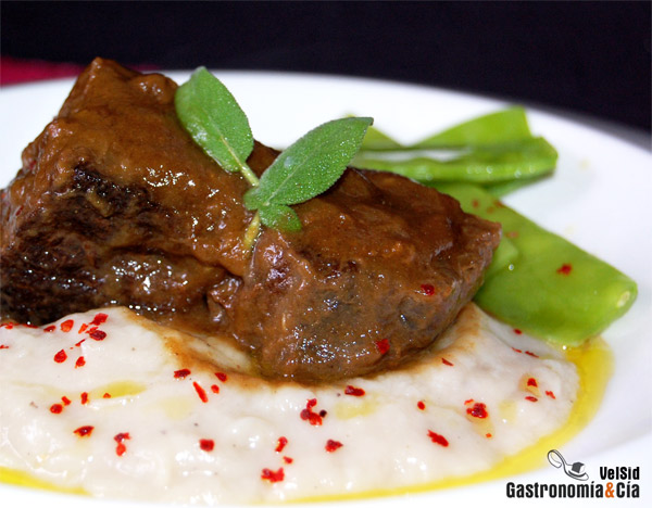 Entrecot con velo de Arzúa-Ulloa sobre puré de garbanzos y boletus