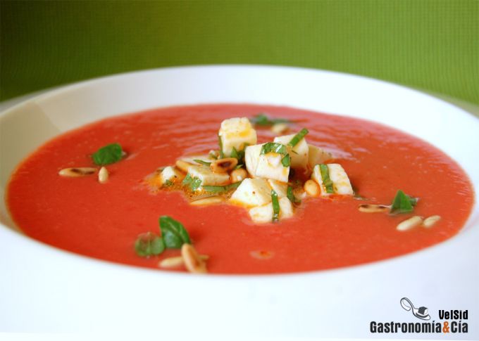 Sopa de tomate con mozzarella y albahaca