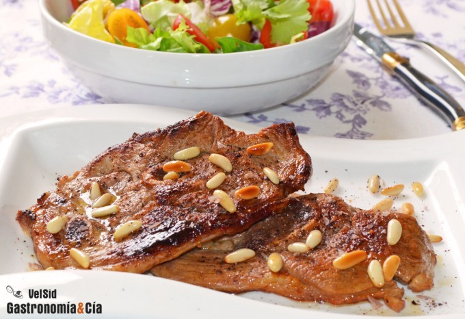 Secreto de cerdo con salsa yakiniku