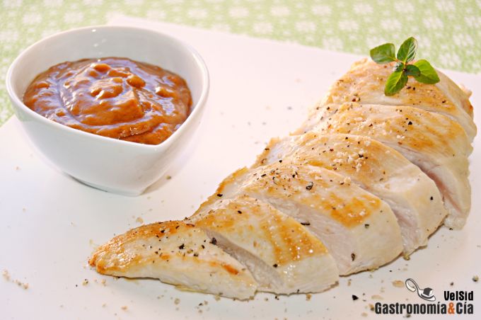 Pollo a la parrilla con salsa de cacahuetes picante