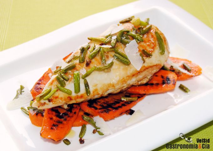 Pechuga de pollo con zanahorias a la parrilla