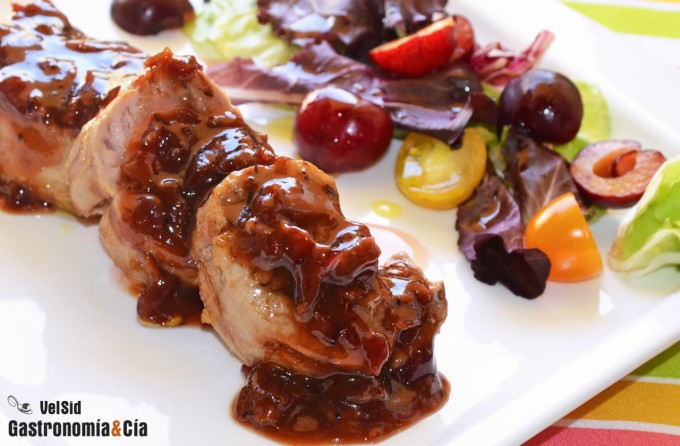 Solomillo de cerdo a la parrilla con salsa ahumada de cerezas