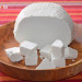 Pero además, recientemente nos llegó un comentario en el que nos decían que el requesón no se podía cortar en dados, y la única forma en la que podemos responder es ilustrando la respuesta con fotografías como las que podréis ver a continuación. Claro que habrá algunas marcas de requesón que por su forma de elaboración tiene una presentación menos compacta y más granulosa y no se puede cortar, pero como podréis ver en las fotos, el requesón que nosotros compramos sí se puede cortar, y el que comprábamos en Barcelona era muy distinto en su formato, pero también lo podíamos cortar.