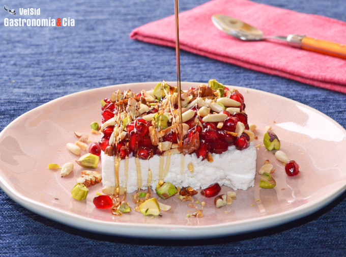 Dicho esto, sólo falta disponer de un buen requesón artesano, el que consumimos nosotros ya lo conocéis, y una buena miel, la que hoy se conoce como miel cruda, que procede directamente del apicultor, y en todas las regiones hay, así que optar por la que se produzca en vuestra zona, de la variedad que más os guste. Y ya podéis tomar nota de esta exquisitez, nuestro requesón con granada, frutos secos y miel, una receta deliciosa para sorprender con el postre.