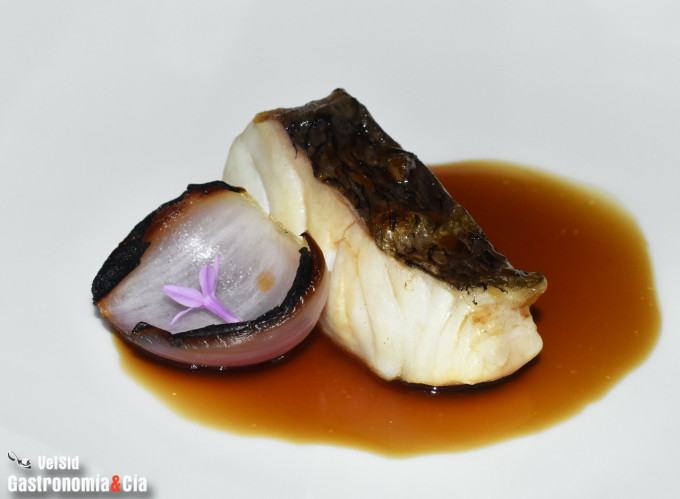 Para continuar, descubrimos un par de pescados atlánticos, en primer lugar, la Sama curada y atemperada con sofrito de tomate ligeramente picante. La sama se conoce también como urta y es un pez que pertenece a la familia de los espáridos, como el pargo, el sargo, el dentón, la dorada… Su carne firme y sabrosa estaba en un punto de curación, en el límite anterior, y deliciosamente aliñada con una suerte de tomate en salsa y con dos intensos bocados pasificados.