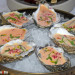 A destacar, la Ostra con ceviche de calamansi, de las mejores ostras aliñadas que hemos probado hasta el momento, somos del parecer de que las ostras se degustan solas para poder gozar plenamente de su textura y su sabor, pero la ostra de Embarcadero, con su ceviche de calamansi, es para comerlas a pares. También probamos las Lapas con aire de mar, muy carnosas y sabrosas, y la Almeja fina con caviar, y una delicia de Escupiñas. Este primer paso culminó con una Espuma de codium y percebes a la brasa exquisito. Realmente el menú empezó muy bien.
