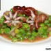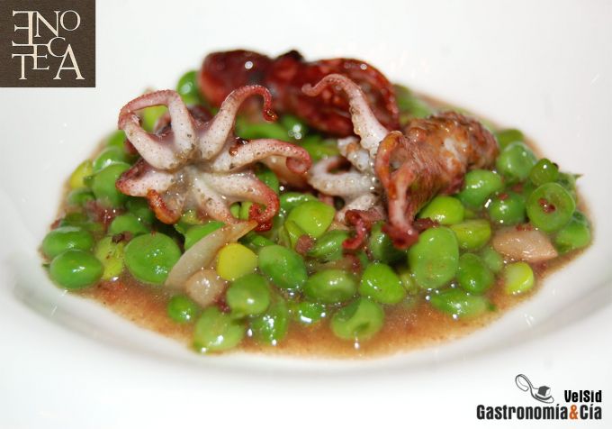 Seguimos con el producto que luce en el plato y termina triunfando en el paladar, Guisantes de Llavaneras con pulpitos, donde aparenta haber sencillez hay maestría. Se fusionan sabores dulces de los guisantes frescos, pelados y aún crujientes, continúa el producto de tierra con la panceta que aporta la grasa, la butifarra su sabor artesano y el mar, que destaca en la cocina de Paco Pérez, con unos pulpitos a la plancha, jugosos y tiernos.
