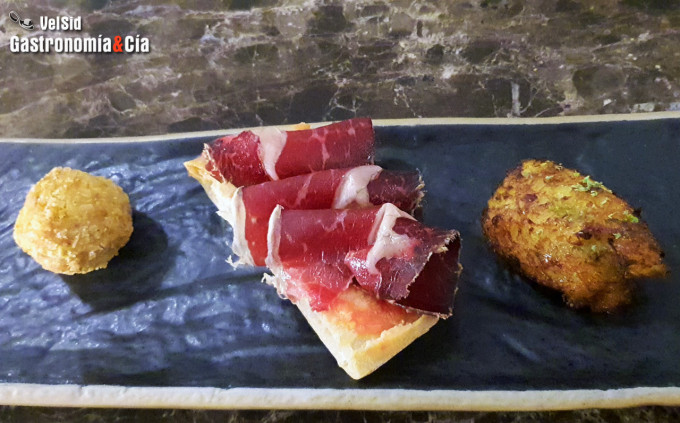 No queríamos extendernos, pero al final las palabras nacen de las experiencias y se expresan como en un momento dado brotan, así que casi os vamos a dejar con los nombres de los platos que probamos, de los matices que nos conquistaron y de los que, quizá, realizaríamos un pequeño cambio. Empezamos con un trío compuesto por el pan de cristal untado con tomate, con la mencionada cecina leonesa de la que ya conocéis nuestra opinión. Además, una croqueta de jamón ibérico perfecta, y un buñuelo de bacalao al que quizá, le faltaba una pizca de cremosidad, arrebatada precisamente por la cantidad de bacalao que contenía.