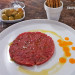Acto seguido se presenta en la sala Albert y pregunta cómo nos gusta el Steak Tartar, y nos gusta con todo, sus encurtidos, su yema, su punto picante… clavó nuestro punto para el tartar, que un poco más picante también nos hubiera gustado, pero no era necesario para poder apreciar la magnífica carne de vaca madurada de Girona, ¿habéis visto qué color?