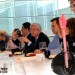 La comida fue el pasado lunes y como podéis ver en las imágenes, nos presentaron una gran mesa para todos los asistentes. Es un comedor amplio, abierto, cómodo, pensado tanto para grandes eventos como este, como para ofrecer el servicio de restaurante habitual. El menú que degustamos en el Restaurante Zarabanda es el que os mostramos a continuación, fue un menú especial adecuado a la mesa que conformábamos, pero podéis ver la carta de invierno que actualmente están sirviendo a través de la página web del restaurante.