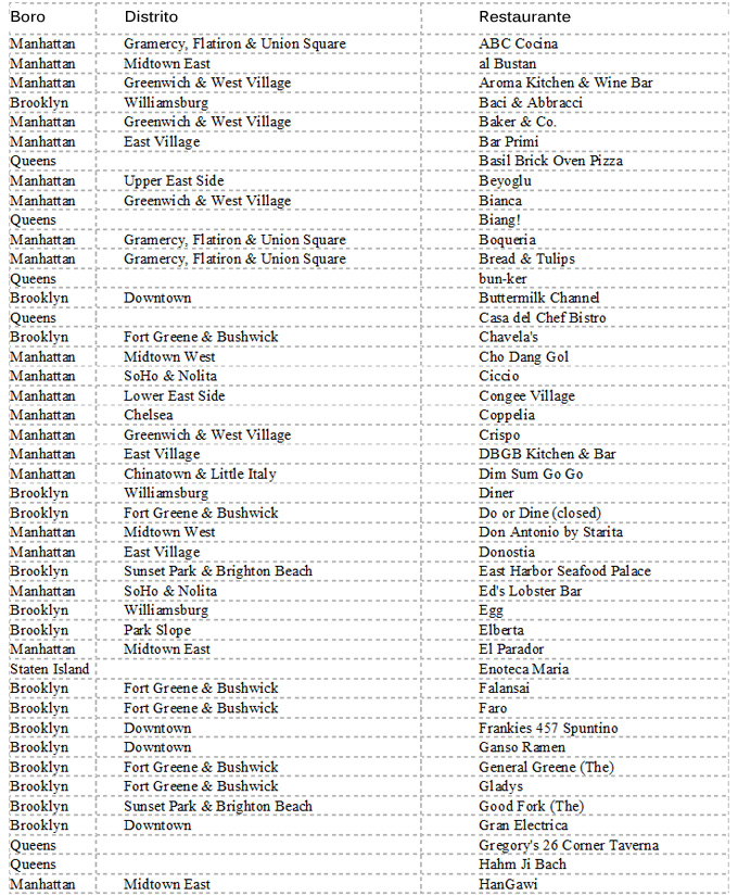 Ahora, sin más preámbulos, vamos a conocer el listado de Restaurantes Bib Gourmand de Nueva York: