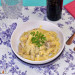 Escurre la pasta cuando esté al dente y vierte la salsa cremosa de atún y limón, mezcla bien.