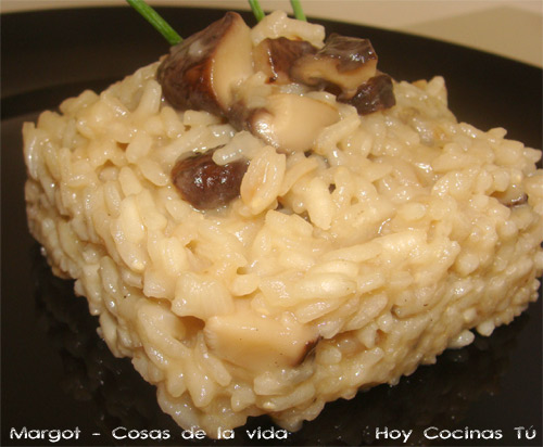 Me hace ilusión ver esta receta, pues me encanta el risotto y hace muy poquito presenté para un concurso uno en mi blog, en vez de salmón, de calabacín y taquitos de jamón ibérico con un toque final de queso de oveja grazalameña.
